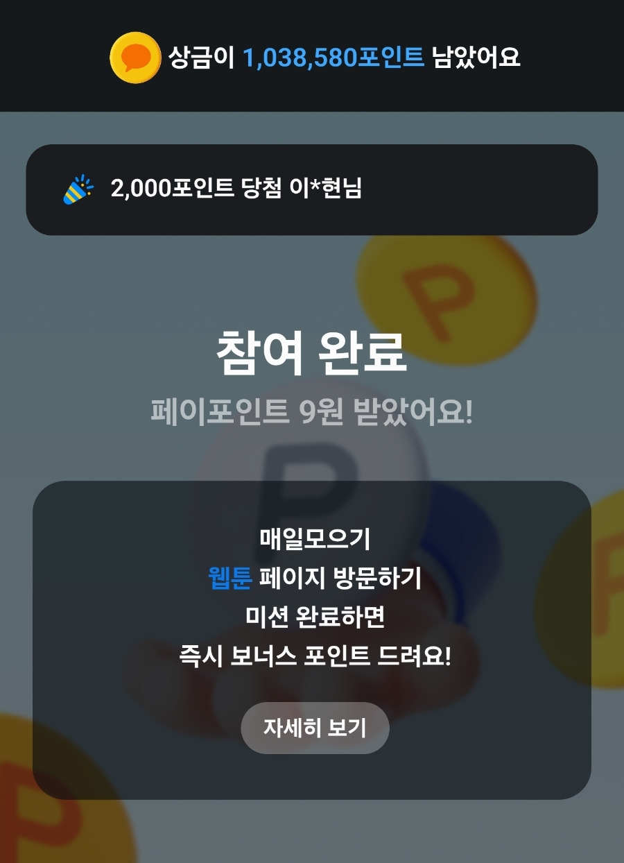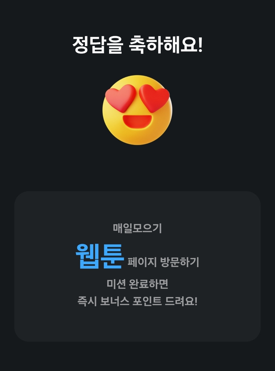 #매일모으기 페이지 방문하기 미션 완료하면 즉시 보너스 포인트 드려요! #정답은웹툰