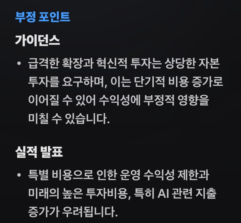 호실적에도 불구하고, 투자자들이 장기적인 관점에서 모니터링해야 할 '단기적 비용 리스크'가 명확하게 드러났습니다.