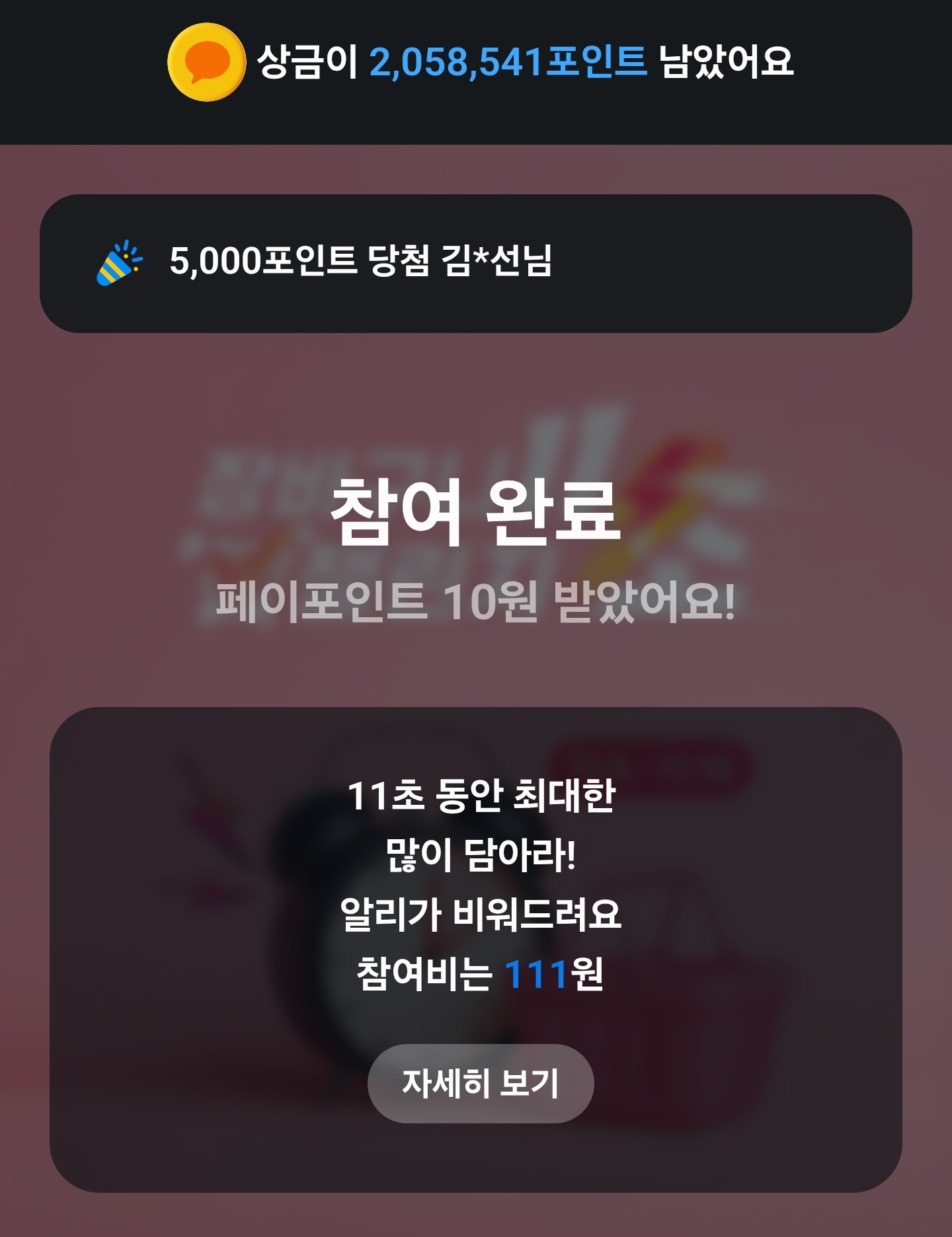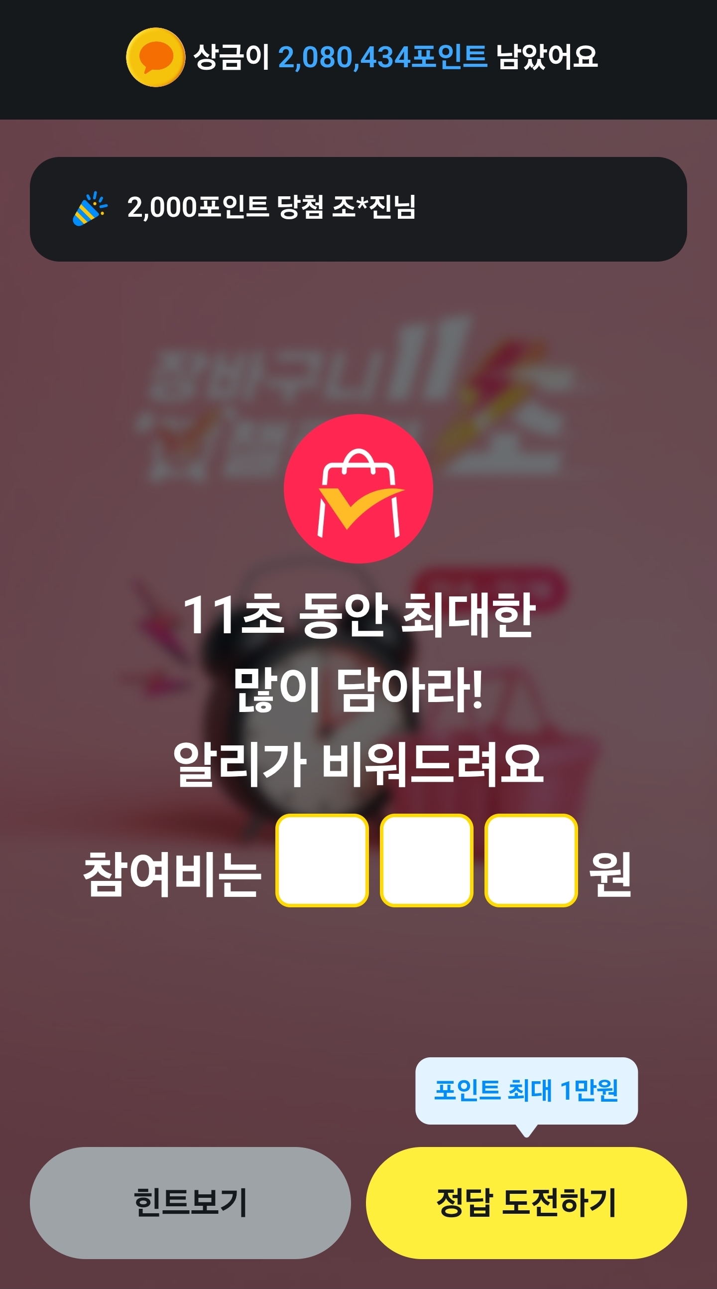 11초동안 최대한 많이 담아라! 알리가 비워드려요 참여비는 000원