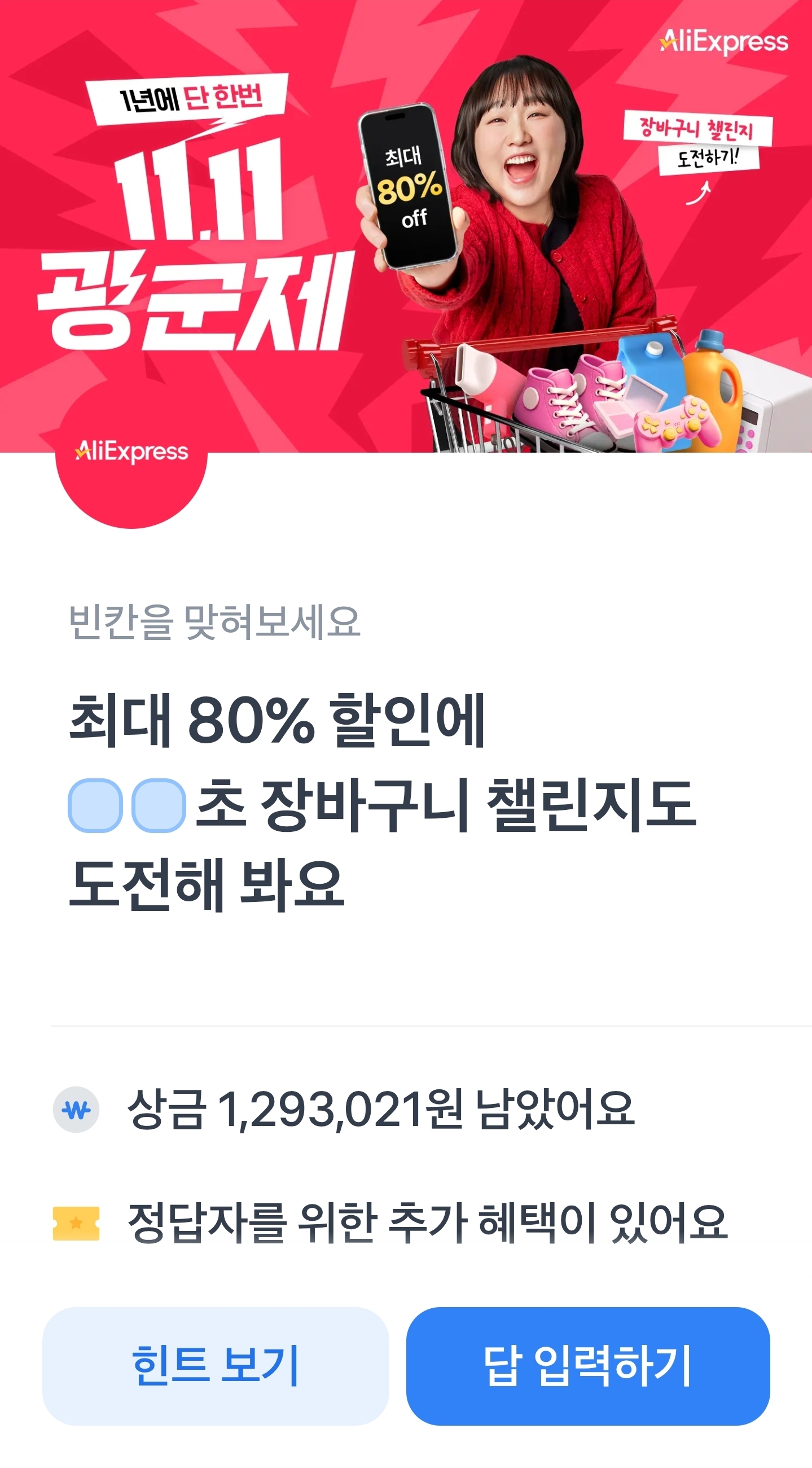 최대80%할인에00초장바구니챌린지도도전해봐요