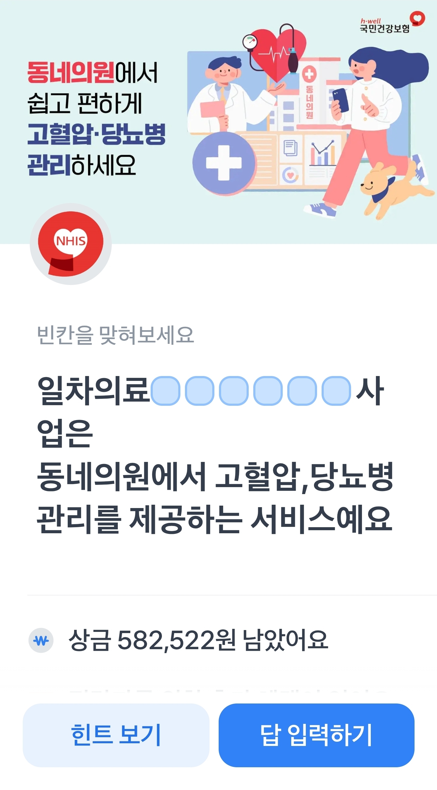 #토스행운퀴즈 #11월19일정답공유 #일차의료000000사업은동네의원에서고혈압.당뇨병관리를제공하는서비스에요