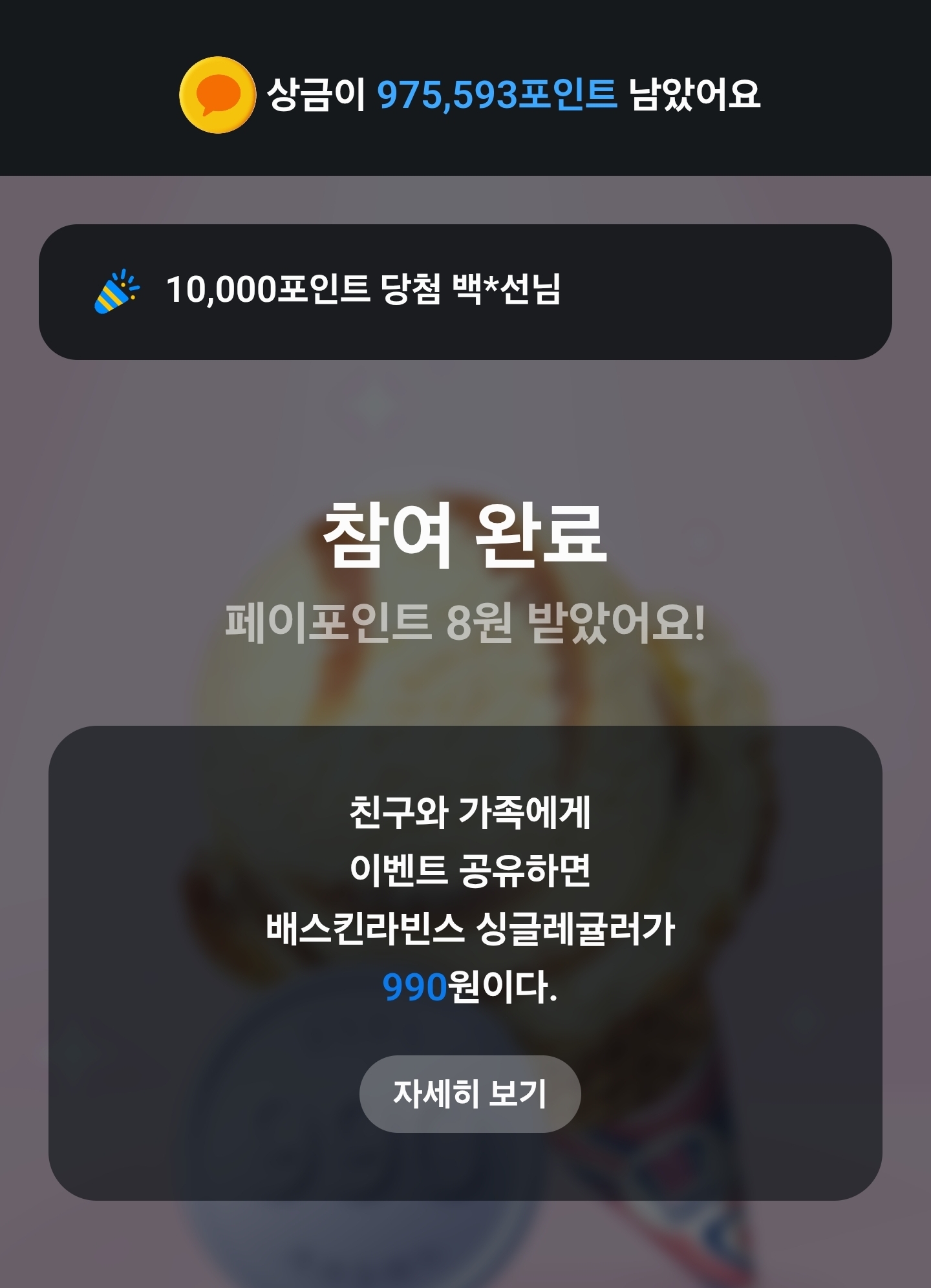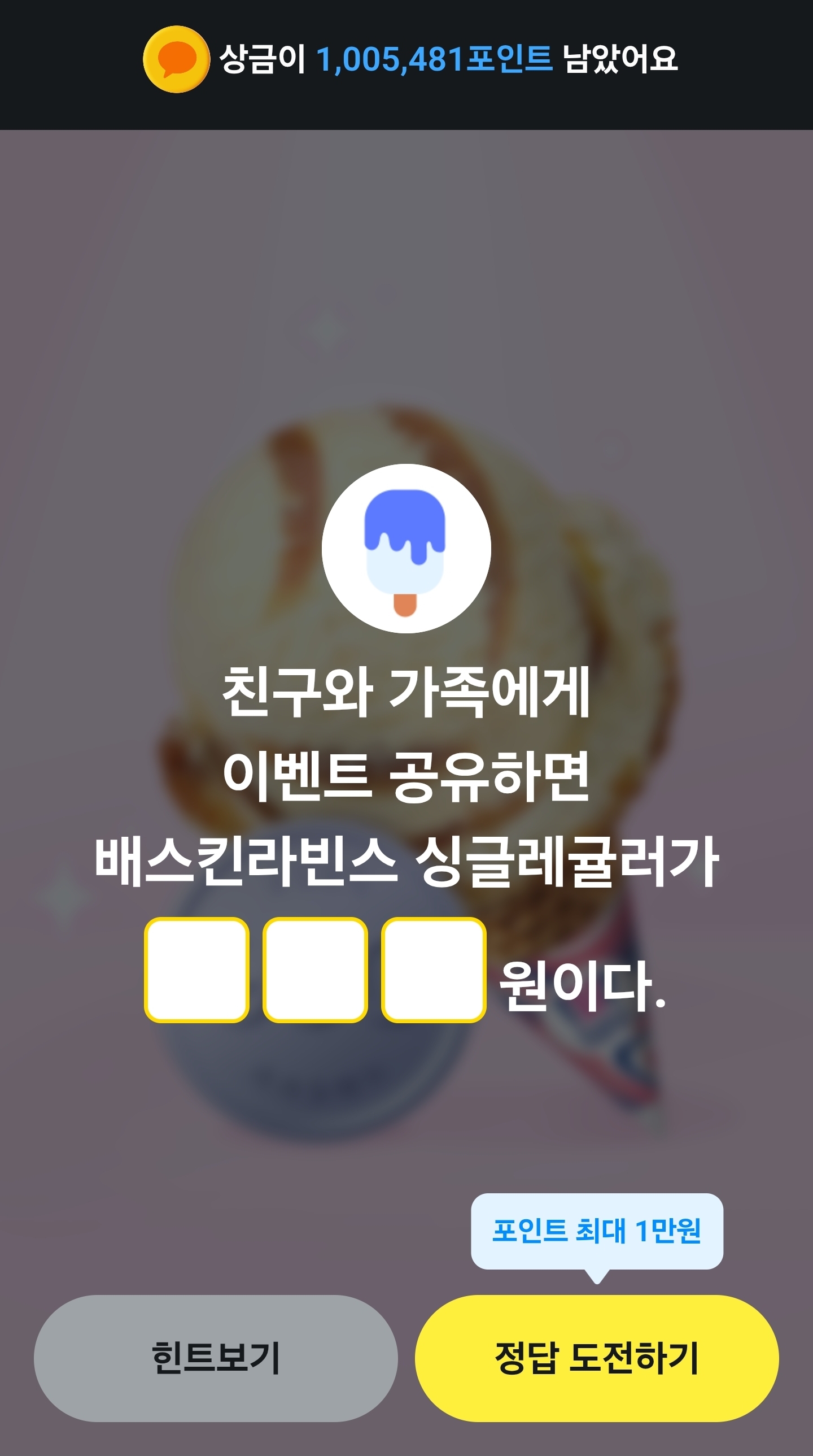 친구와가족에게이벤트공유하면배스킨라빈스싱글레귤러가000원이다