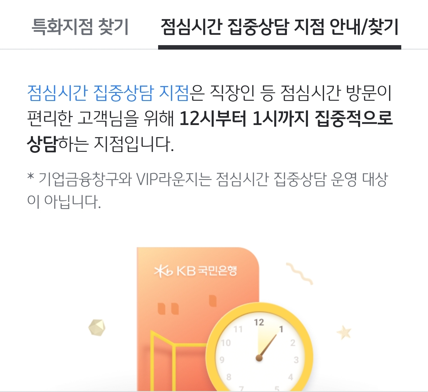 * 기업금융창구와 VIP라운지는 점심시간 집중상담 운영 대상이 아닙니다.