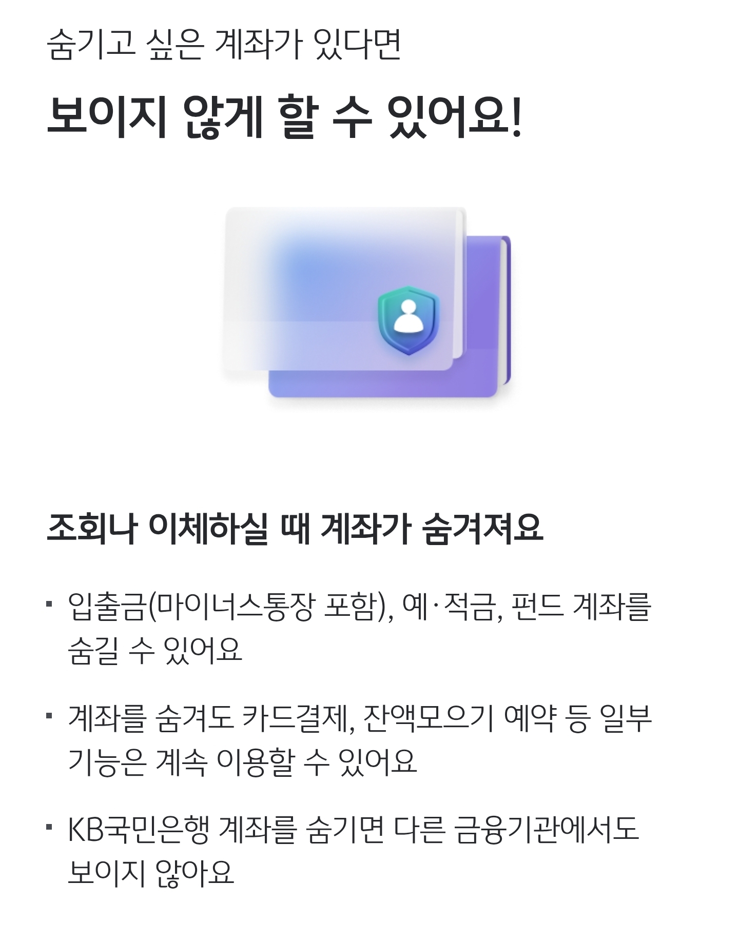 KB국민은행 계좌를 숨기면 다른 금융기관에서도 보이지 않아요