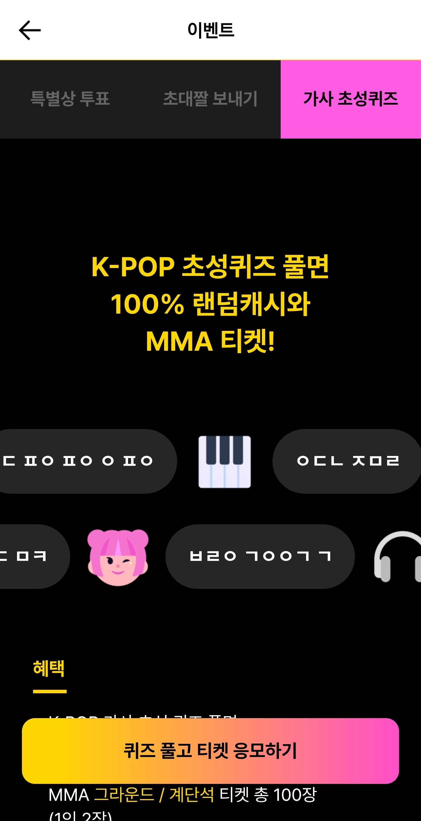 K-POP 가사 초성퀴즈 풀고 랜덤캐시 받기