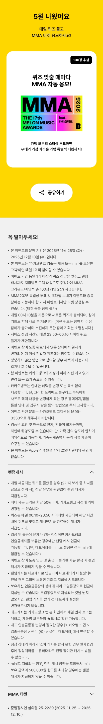 | 카카오뱅크퀴즈 K-POP가사초성퀴즈풀고랜덤캐시받기 12월1일정답공유 (5) | 2025.12.01 |