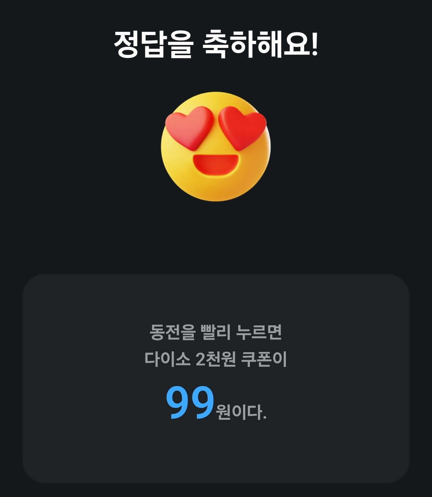 동전을 빨리 누르면 다이소 2천원 쿠폰이 □□원이다.