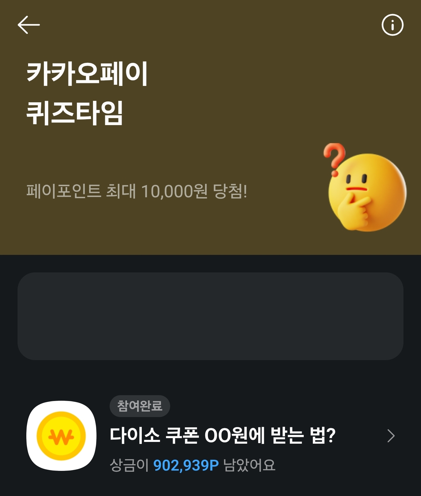 카카오 페이 퀴즈 동전을 빨리 누르면 다이소 2천원 쿠폰이 00원 정답