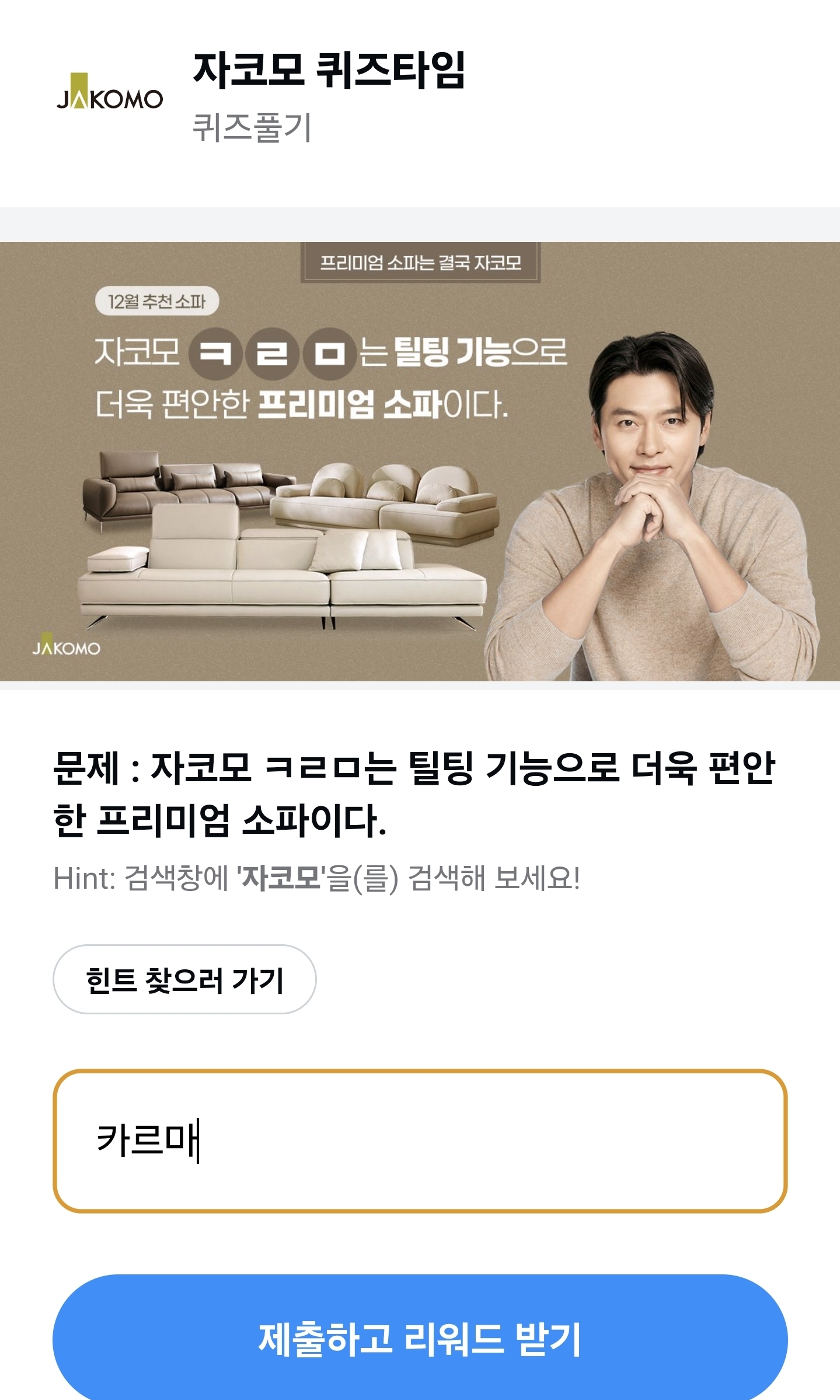 카카오뱅크 자코모 퀴즈타임 퀴즈풀기