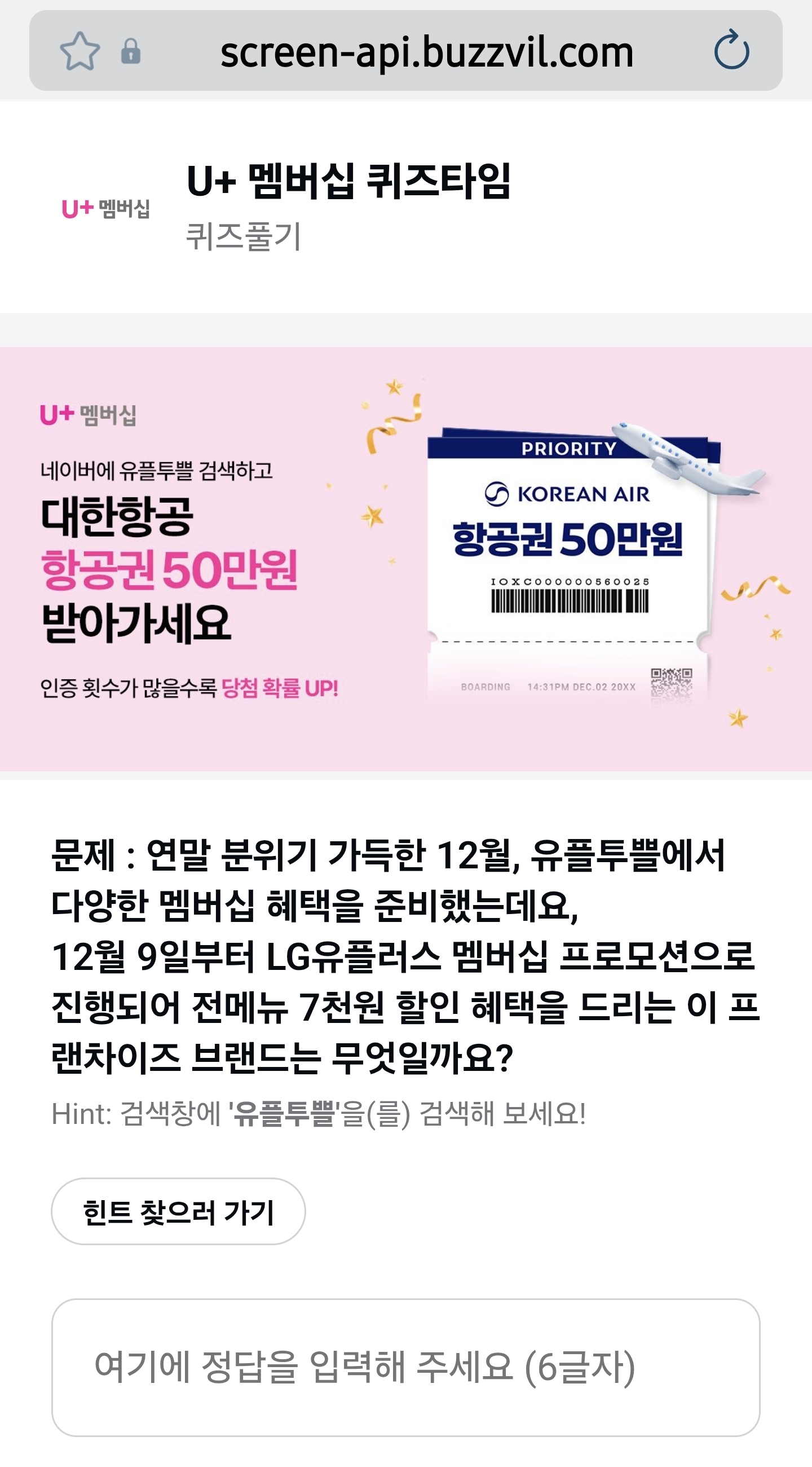 문제 : 연말 분위기 가득한 12월, 유플투쁠에서 다양한 멤버십 혜택을 준비했는데요,