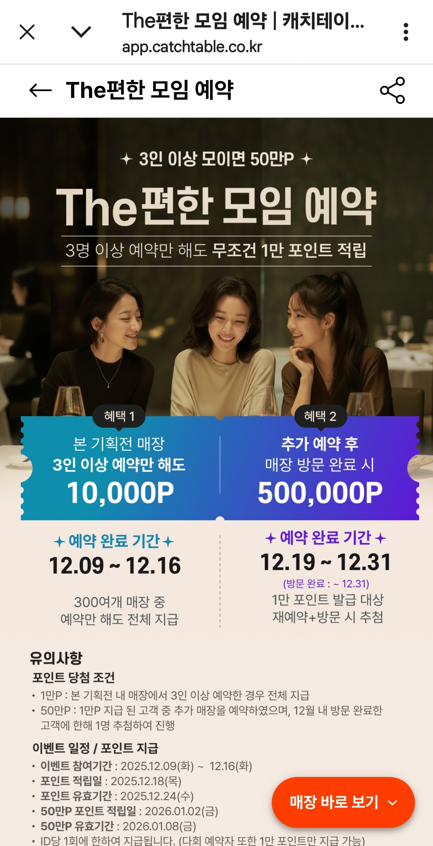 이벤트 조건: The편한모임 추가 예약 후 식당을 실제로 방문해야 추첨 대상이 됩니다.