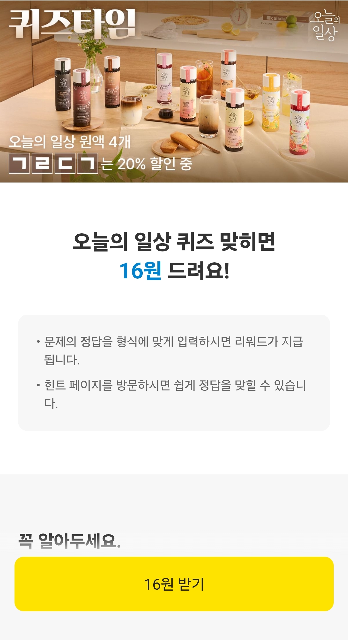 오늘의일상원액4개 0000는 20% 할인이다. (초성 : ㄱㄹㄷㄱ)