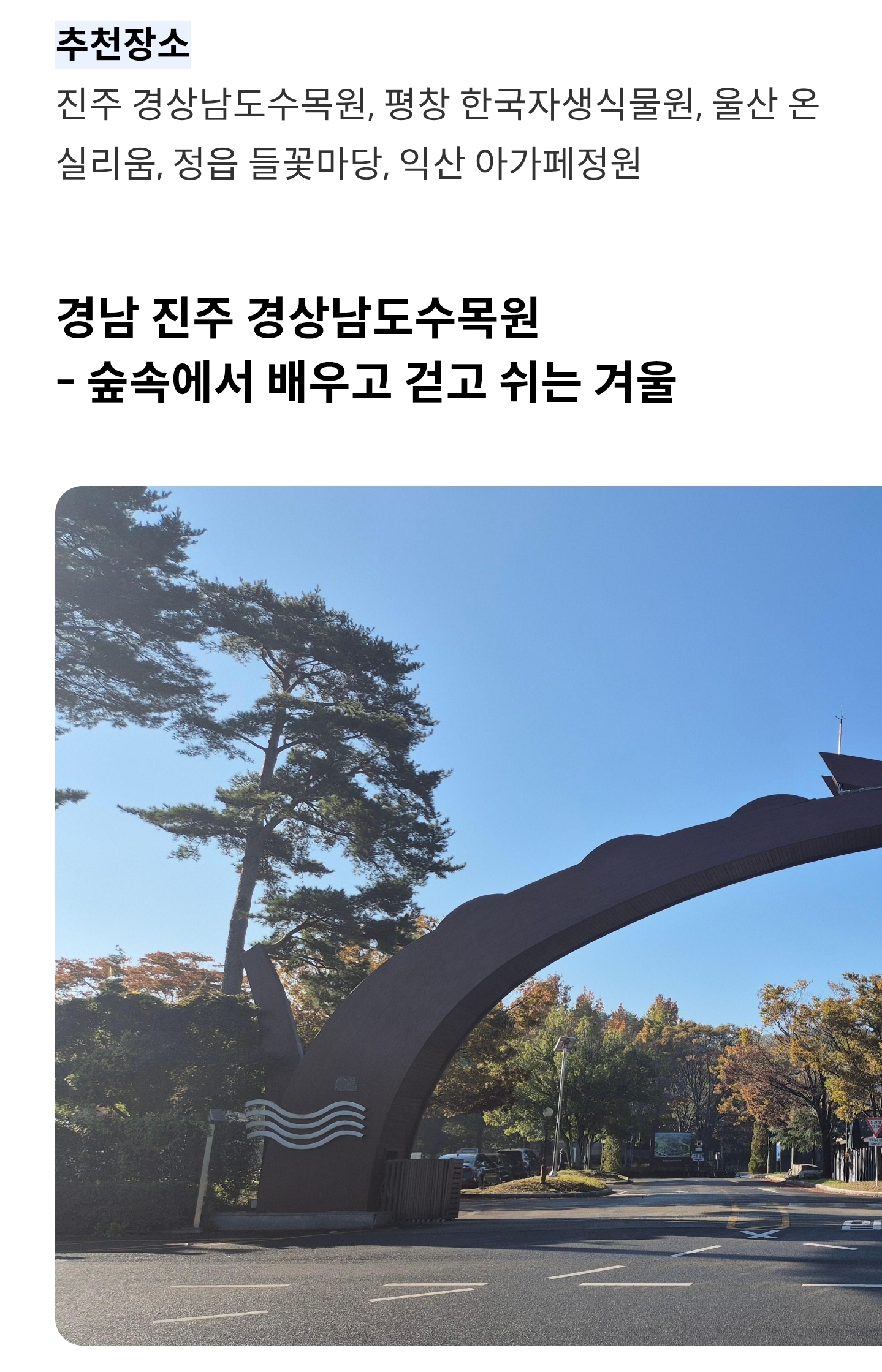 겨울철에도아름다움을간직한숲과정원경남최초의공립수목원인'경상남도수목원'이자리잡은지역은어디일까요?