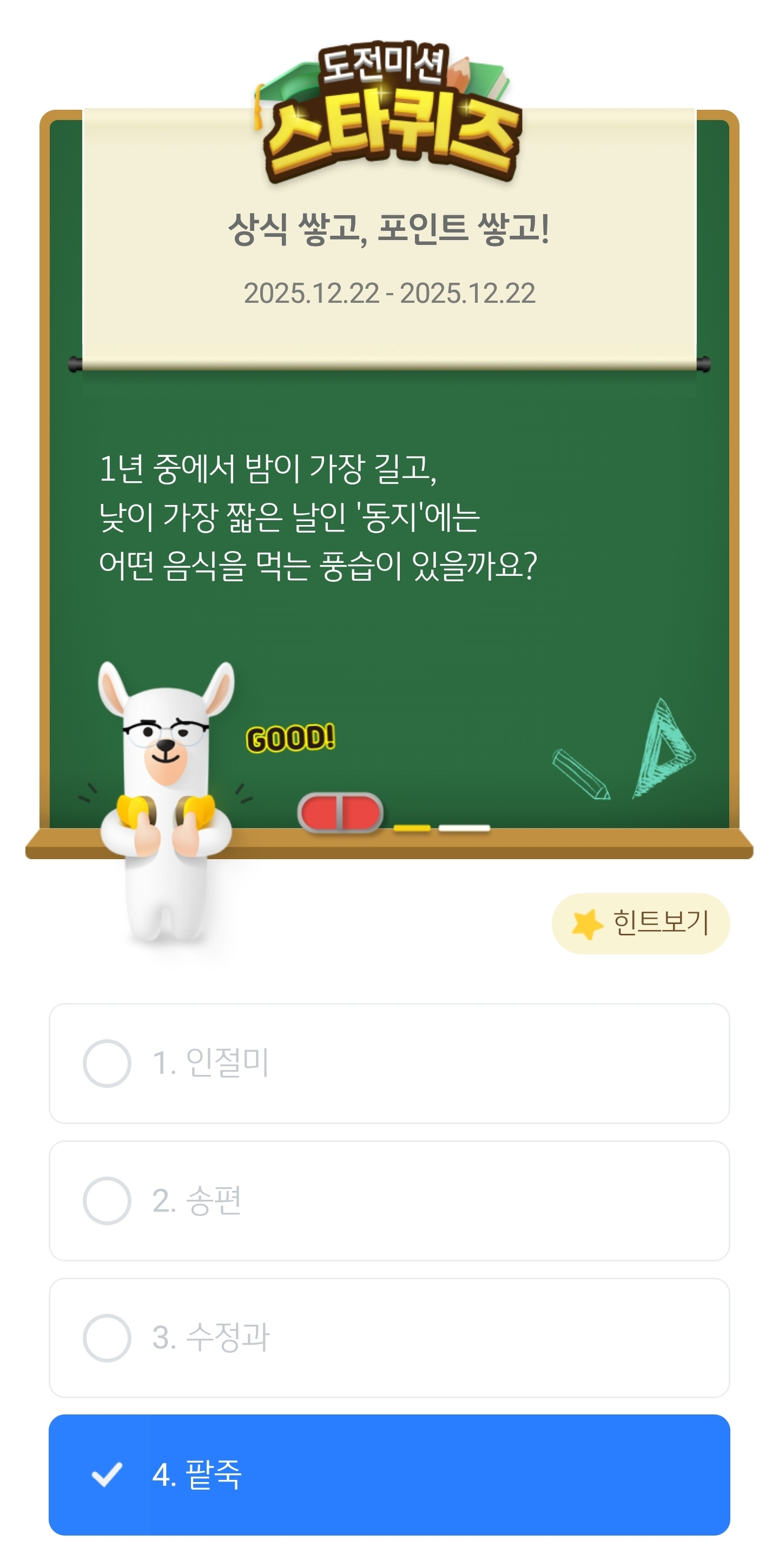 #KB스타퀴즈12월22일정답공유