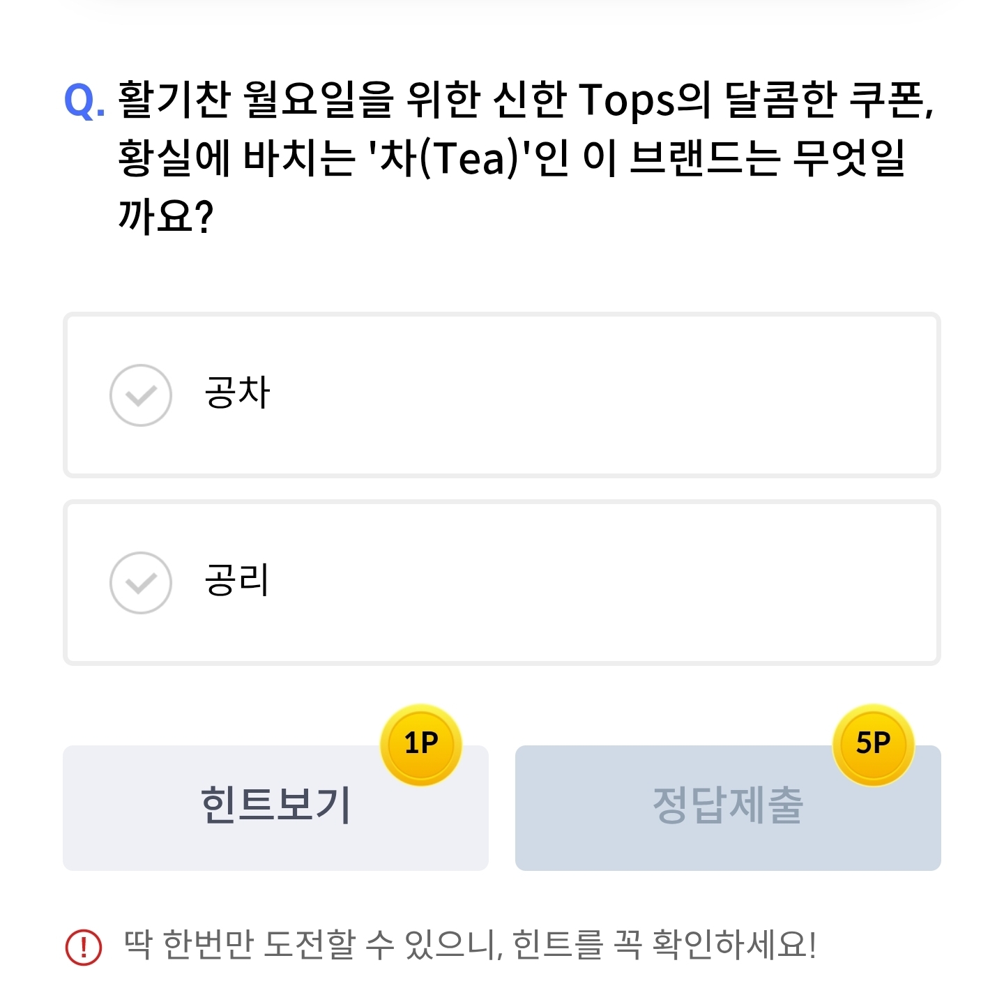 활기찬월요일을위한신한tpos의달콤한쿠폰,황실에바치는차(tea)인이브랜드는무엇일까요?