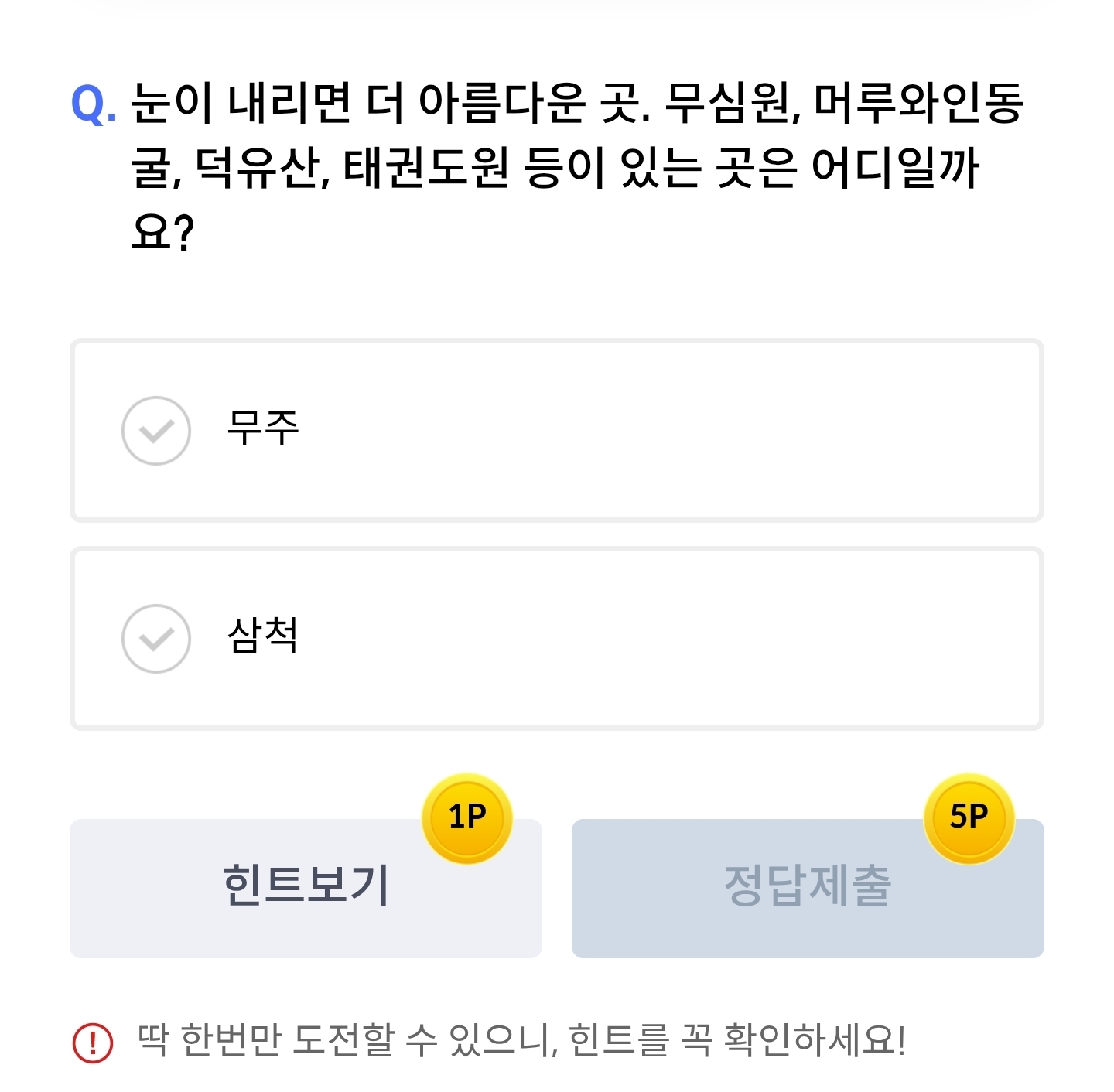 신한쏠페이퀴즈팡팡 12월26일 정답공유 눈이내리면더아름다운곳무심원,머루와인동굴,덕유산,태권도원등이있는곳은어디일까요?