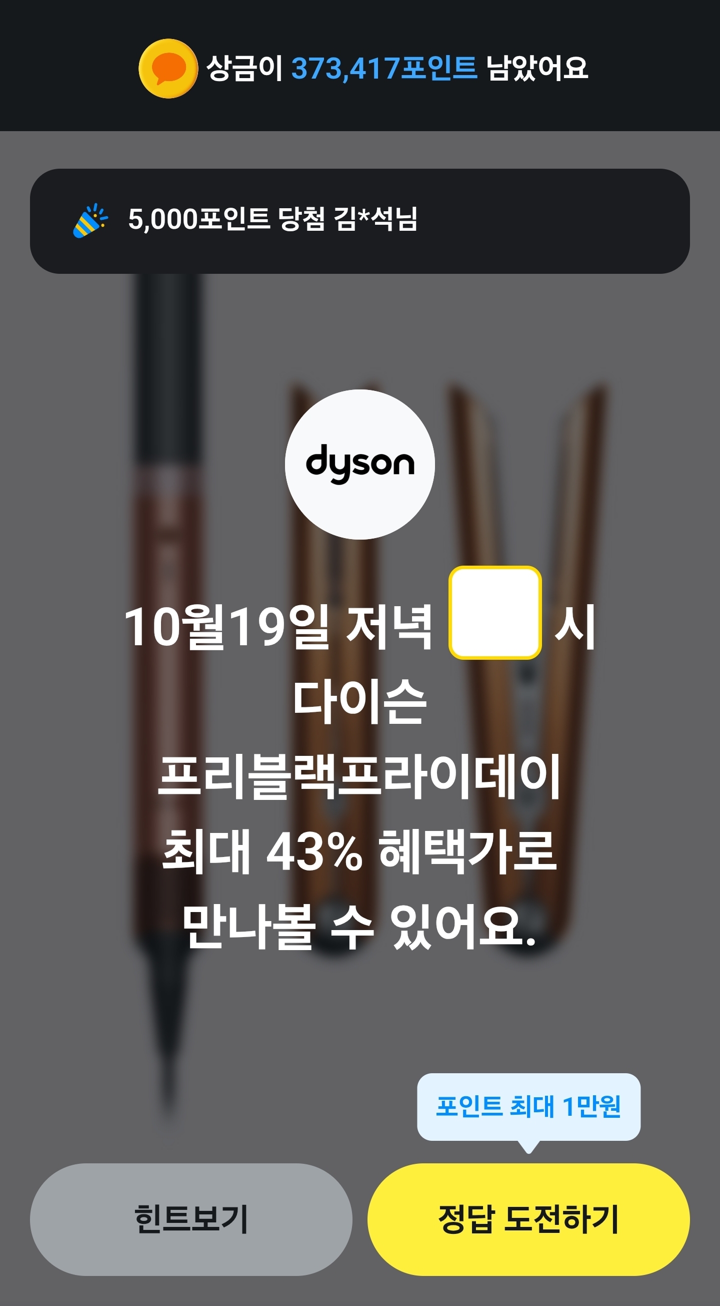 10월19일 저녁 O시 다이슨 프리블랙프라이데이 최대 43% 혜택가로 만나볼수 있어요.