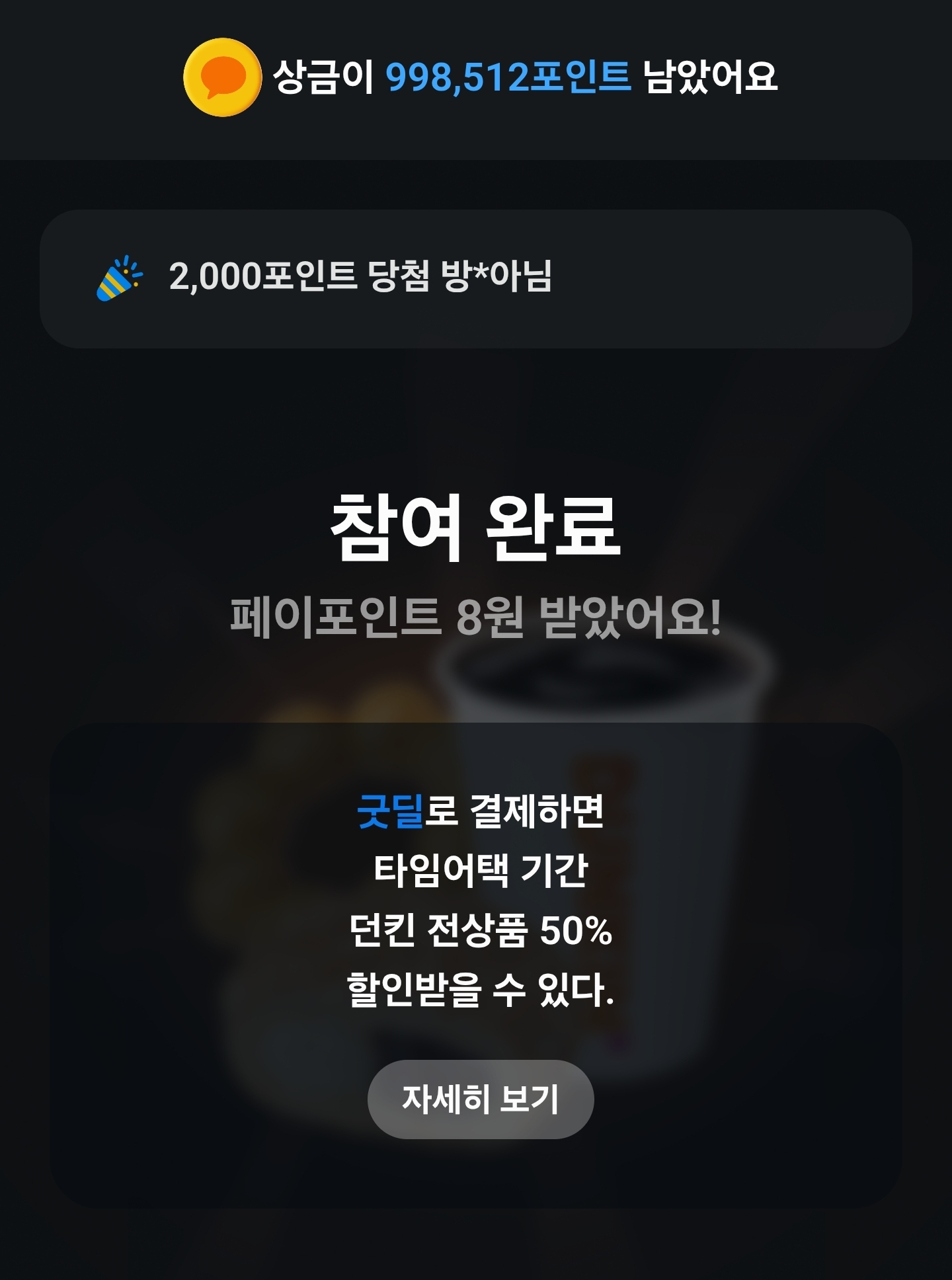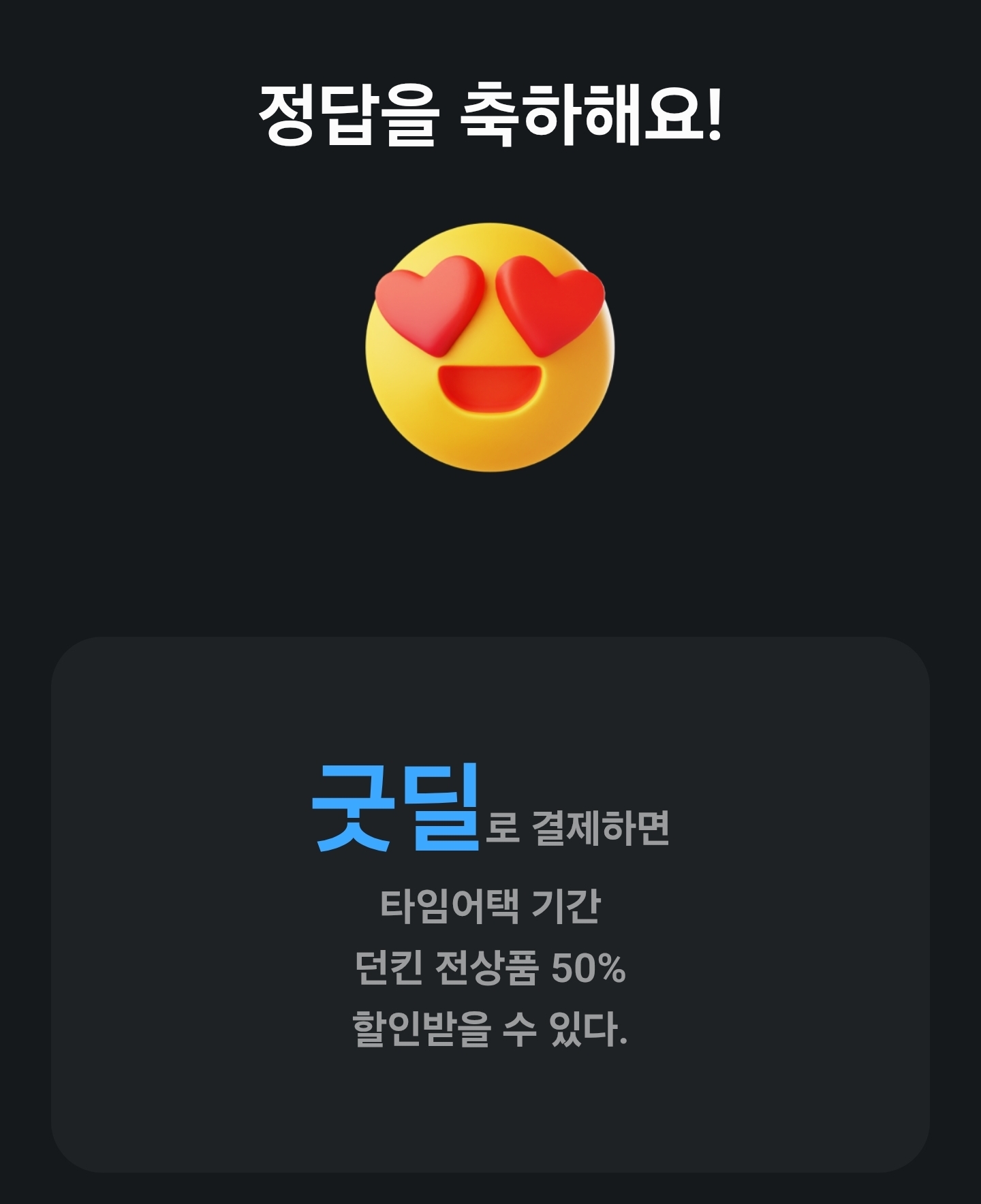 #결제하면 타임어택 기간 던킨 전상품 50% 할인받을수 있다 #카카오페이퀴즈 #퀴즈타임